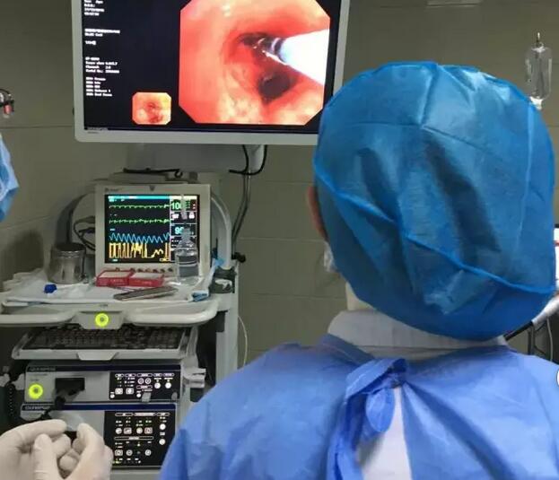 呼吸科于2016年开展了气管镜下冷冻刀及氩气刀治疗,效果满意。仪器采用ERBOKRYO CA多功能冷冻治疗仪,其适应证主要有:气道良恶性狭窄再通、冷冻切除、组织活检、气管异物、组织失活等。支气管介入治疗中,可使用软性冷冻探头对瘤体组织反复冷冻、粘出瘤体,彻底去除肿瘤组织,实现即刻再通;可对病灶直接冷冻治疗或配合氩气刀、电凝、微波、激光治疗以减少组织增生;亦可使用软性探头经支气管行组织活检。