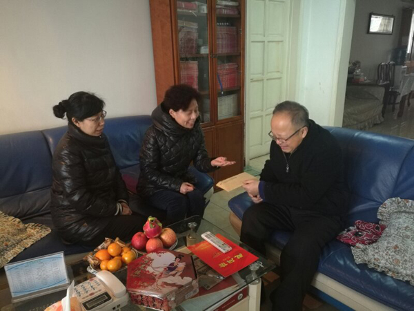 元月23日,王武占书记、杨军乐副院长在人事科有关同志的陪同下来到电子一路唐园小区亲切看望我院同位素专家吴四海主任,向吴主任表达亲切的慰问和新春的祝福并送上慰问金和慰问品,为吴主任带去组织的关怀和温暖。王书记一行还到医院二府庄小区看望慰问了谭世常、张先品、王玉福、李怀珠、郭秀英等老领导、老专家、老同志,向他们表达组织的关怀,同老同志们嘘寒问暖、互致新春问候。