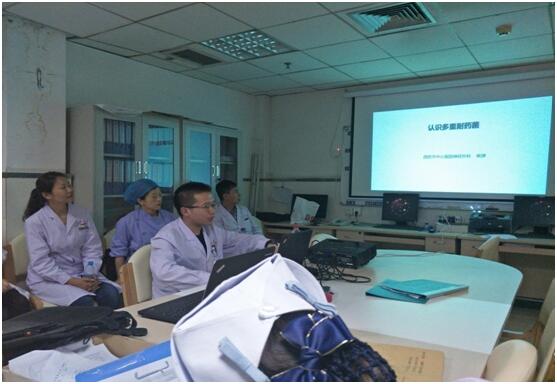 首先,神外柴源医生从“认识多重耐药菌”开始,深入浅出地讲解了多重耐药菌的概念、来源和危害,使患者家属对多重耐药菌有了一个基本了解。接着,护士王卫华从耐药菌防控角度入手,详细讲解了如何控制耐药菌的传播、手卫生的重要性以及医疗废物的分类处置等知识,以丰富多彩的内容和制作精美的幻灯片,为患者和家属上了一堂生动的感染防控培训课。王卫华护士为参加培训的家属示范了六部洗手法,教大家如何正确实施手卫生。控感办陶西萍科长耐心回答了患者和家属的提问,解除了患者和家属的心中疑惑。