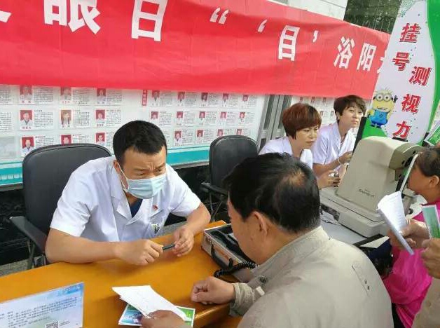 在医院领导及相关部门的大力支持下,义诊活动于2017年6月6日上午八时三十分准时开始。在眼科主任杨格强副主任医师的带领下,全体眼科医务人员聚集在医院门诊楼外,以高涨的情绪、饱满的热情投入到义诊活动中。义诊期间,我们除了为市民普及“近视眼”的相关知识、指导市民培养良好的用眼习惯外,还免费进行近视眼、白内障、青光眼、糖尿病视网膜病变等的普查,以及各种常见眼病的咨询服务。