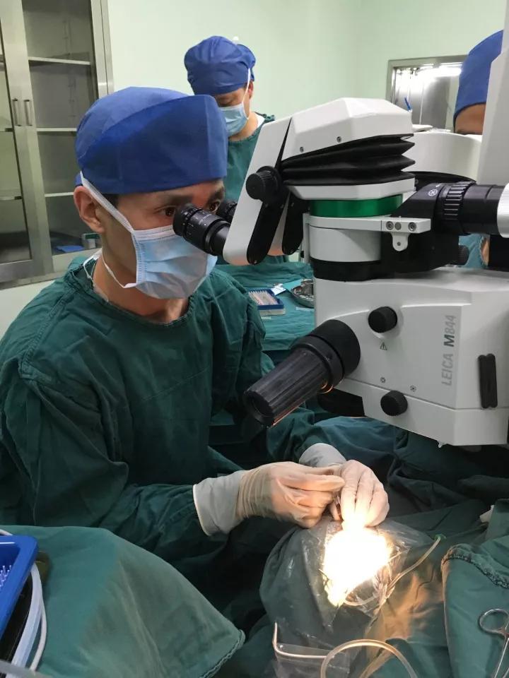 一位40岁的印刷厂工人,在工作中不慎被机床飞出的金属击中右眼,患者当时并未意识到问题严重性,没有及时就诊,一天后视力突然下降,2017年11月7日急诊来中心医院眼科就诊,诊断为右眼穿通伤、角膜裂伤、球内异物、外伤性白内障、眼内炎。患者伤情严重且复杂,面临失明甚至丧失眼球的危险,患者极其焦虑。经过眼科主任杜兆江博士、肖潇副主任医师、张静主治医师等集体讨论,认为患者年龄轻、伤情重、眼内炎进展迅速,要尽快手术,尽可能保住右眼视力,避免劳动力的丧失,但角膜、虹膜、晶体等多种眼内结构受损,而且球内异物紧贴晶体后囊膜,甚至可能已经刺穿晶体后囊膜,取出异物极其困难,手术难度极大,稍有闪失即有可能异物掉入玻璃体腔,损伤视网膜,造成更为严重的后果。
