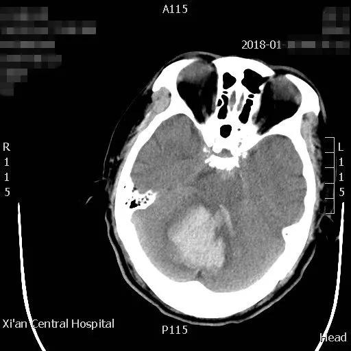 患者病情危重,出血点位于后颅窝靠近天幕,位置狭小、深在、靠近脑干、直视困难,应用普通手术操作困难,容易损伤脑干,血肿也不容易彻底清除。主管主任医师王占尧对该患者进行了详细的查体后,与治疗小组商议手术方案。为进一步减少小脑皮层损伤、降低颅脑创伤,王占尧主任医师决定对该患者使用内镜辅助清除血肿。