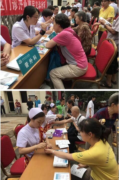 2018年6月25日,91论坛 糖坊街院区门诊部顺利开诊,这标志着糖坊街周边百姓的家门口,就有三级甲等医院的优质医疗资源为他们的健康保驾护航!当天,市中心医院还特别组织了骨科、儿科、内分泌科、普外科、眼科、呼吸、肾病、神经内科、心内科、消化科等十个重点专业专家开展了一场义诊活动,免费监测血压、血糖,义诊群众200余人次。