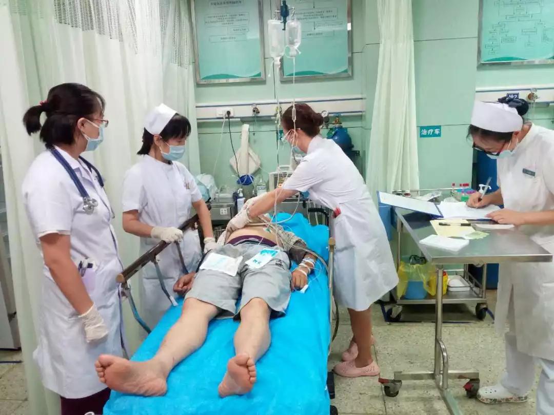 一位64岁老年男性患者,被路人发现昏迷不醒,伴高热,体温高达42℃,无陪人及家属。由120同警方将患者急送入我院急诊科,病情极其危重。急诊科立即由孙为副主任医师、张思维医师及杨瑞萍副主任护师、寇飞燕护师、王玉婷护师等人组成的医护团队迅速接诊,汇报科主任及总值班,开辟急危重症绿色通道,启动无主患者救治流程,与职业病科谢曼丽副主任医师一同积极投入抢救,立即降温,补液扩容,降颅压,抗心衰等综合治疗。收住职业病科,截止今晨,患者神志已逐渐清楚,体温明显下降,降至36.8℃,后续治疗正在有条不紊进行。