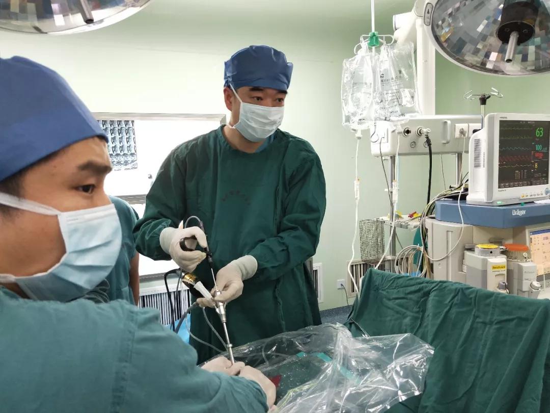 在郭华副院长带领下,骨二科张延平主任、杨寅副主任团队大力发展脊柱疾病的微创诊疗技术,已开展了各类老年骨质疏松性椎体压缩骨折的PVP、PKP治疗;脊柱转移性肿瘤的穿刺活检配合介入治疗;多节段椎体骨折经皮椎弓根螺钉置入复位内固定术;经皮内镜下腰椎髓核摘除神经根减压术(PELD);MIS-TLIF治疗腰椎滑脱症等多种脊柱微创手术,其中郭华副院长带领开展的全内镜下腰椎管减压三柱融合技术(女蜗+后羿系统),代表目前国内脊柱微创最高水平,在西北地区最先开展,取得了显著的疗效。