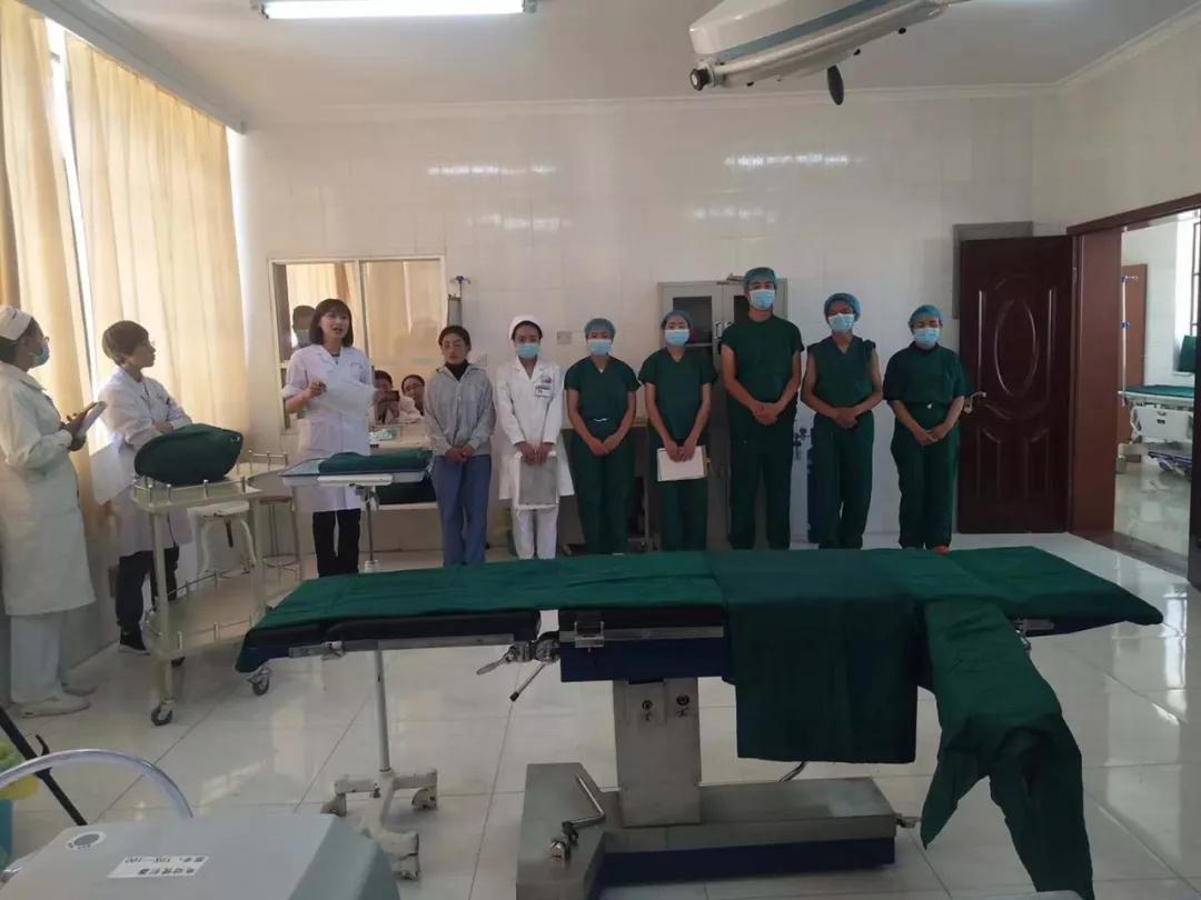 但是,经过了解,札达县医院每年的手术量极少,医务人员平日的专科学习机会有限,尤其是护理人员中,全院没有一名手术室专科护士,人员的实践能力几乎为零。培训迫在眉睫,时间紧、任务重,刘静立即根据该院情况,制定了完善的<<札达县医院手术室专科护士培训计划>>,护理部从全院护士中,挑选出两名藏族护士作为专科护士进行培训。虽是短期,虽只有两名学员,但面对没有任何手术室工作概念的藏族护士来说,培训任务同样艰巨,内容一个也不能少,按照2018版<<手术室护理实践指南>>的标准,刘静带着两名护士早上手把手的教,下午实打实的练,跟着认认真真的考,几周下来,我们的藏族小护士干起手术室工作来,已经有模有样了。但是,他们从来没有配合过一例手术,理论和实践难以结合,在全年的手术量都在个位数的现实情况下,刘静想到了解决办法,“手术情景模拟演练”,但是,现实情况又给刘静出了难题,县医院本院的麻醉及外科医生的知识经验也不丰富,要想“演练”,就得全体人员从头开始学!指定了详细的“演练方案”后,刘静带领参加“演练”的所有队员,展开了“传、帮、带”式的培训。她只有一个信念,不管基础多差,一定要按照国家标准教会这里的医务人员手术的配合流程和常规。功夫不负有心人,刘静带领学员们从最基础的开始,一遍一遍讲,一遍一遍练,终于,将一场精彩的“手术情景模拟演练”呈现出来。