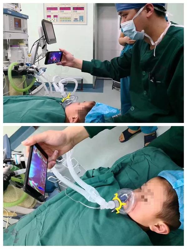 3月1日清晨,91论坛 手术室里,一台全麻下眼科斜视手术即将开始,接受手术的是一位年仅4岁的小患者,因为患有一种特殊的先天性垂直斜视(分离性垂直斜视),需要尽早接受手术,以免影响视功能的发育。手术开始前,看到手术室内的各种设备和捂着帽子口罩来回穿梭的医务人员,年幼的孩子非常紧张恐惧,浑身发抖,迟迟不愿躺下接受麻醉,年轻的麻醉医生,平日里也是个大男孩,但为了安抚小男孩,不断欢快的和孩子聊着天缓解他的紧张情绪,并且承诺可以躺着看动画片快快乐乐做手术,孩子听后真的乖乖躺下了,温柔的麻醉医师也信守承诺一直举着手机给他播放最爱看的迪士尼动画片冰雪奇缘,直到孩子沉沉睡去。这一幕被等待手术的眼科医生抓拍下来,春节刚过没多久,天气还有些许寒冷,但大家都被这有爱的举动温暖了。