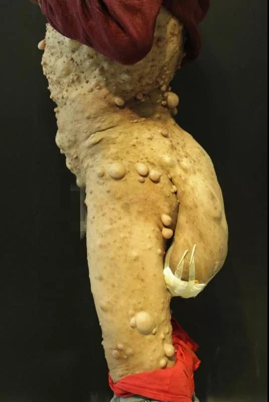 3月14日,91论坛 烧伤整形美容外科门诊来了一位特殊的病人。病人站在医生面前与平常人无异,然而当他转身掀起衣服时,医生惊讶的发现其腰部竟然长了一个类似蜥蜴“尾巴”样的巨大肿物,这个肿物末端已出现溃烂,局部散发着阵阵臭味。经过病史询问及检查,患者被初步诊断为“腰部巨大神经纤维瘤伴局部感染破溃”。