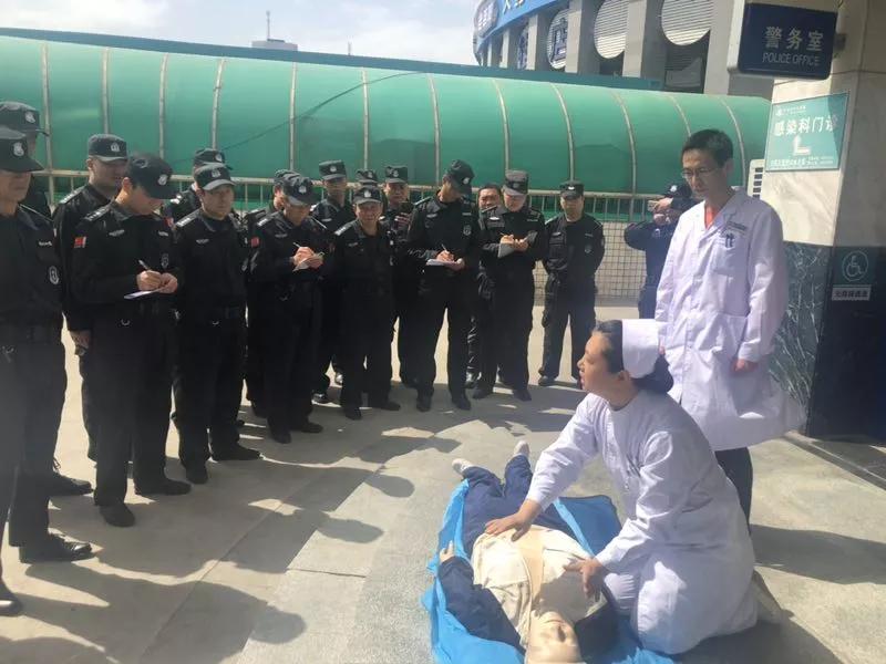 下午2点,在急诊科主任鱼军及护士长李莎的带领下,孙为副主任医师针对保安队员的工作特点深入浅出地讲解了心肺复苏的理论知识及操作要点,张渊主管护师现场模拟指导,一对一、手把手的亲自示范指导心肺复苏的细节并耐心纠正易犯错误。在保安队闫队的配合安排下,各位安保队员逐一演练,最终完成了心肺复苏技能的培训学习。