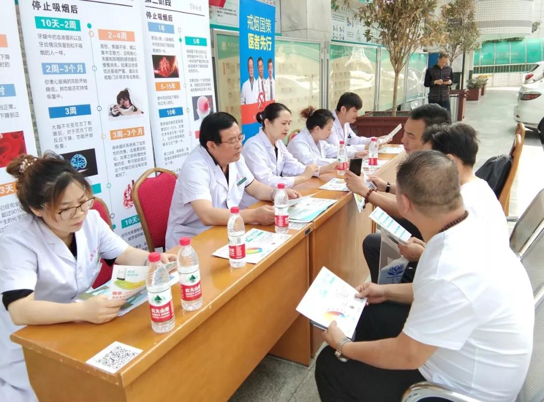 91论坛 呼吸科为配合今年世界无烟日的主题和西安市政府及卫生部门的公共场所控烟制度的执行,在我院门诊楼一楼开展“2019世界无烟日——'烟草和肺部健康'义诊活动”。由于前期的义诊活动宣传,有很多患者和患者家属、市民都来到义诊区咨询戒烟的相关问题。