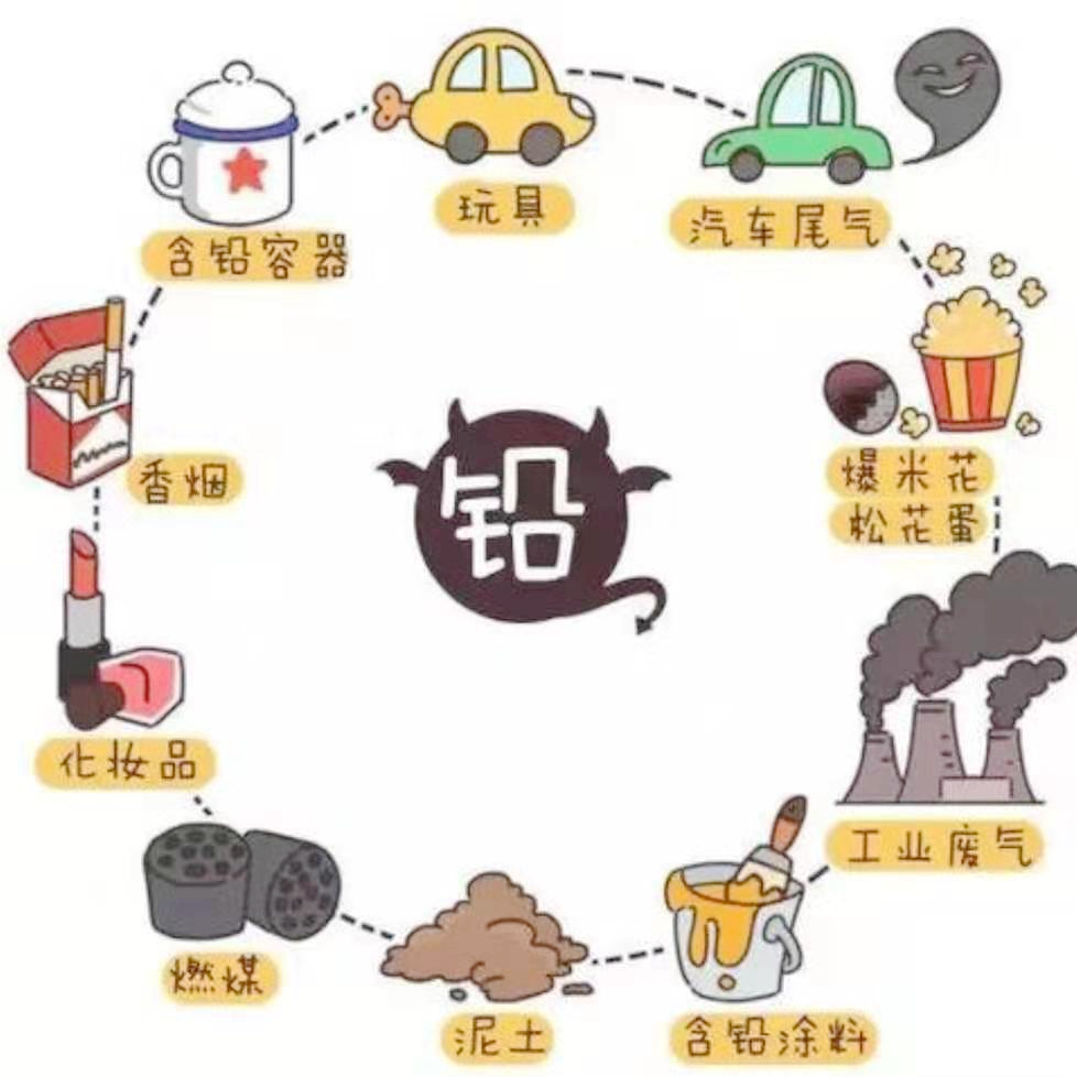 主要通过消化道和呼吸道进入机体。少数是因为皮肤涂抹了含铅的药物或护肤品及爽身粉之类而吸收至体内。一旦进入人体,人体内铅的自然代谢非常缓慢。