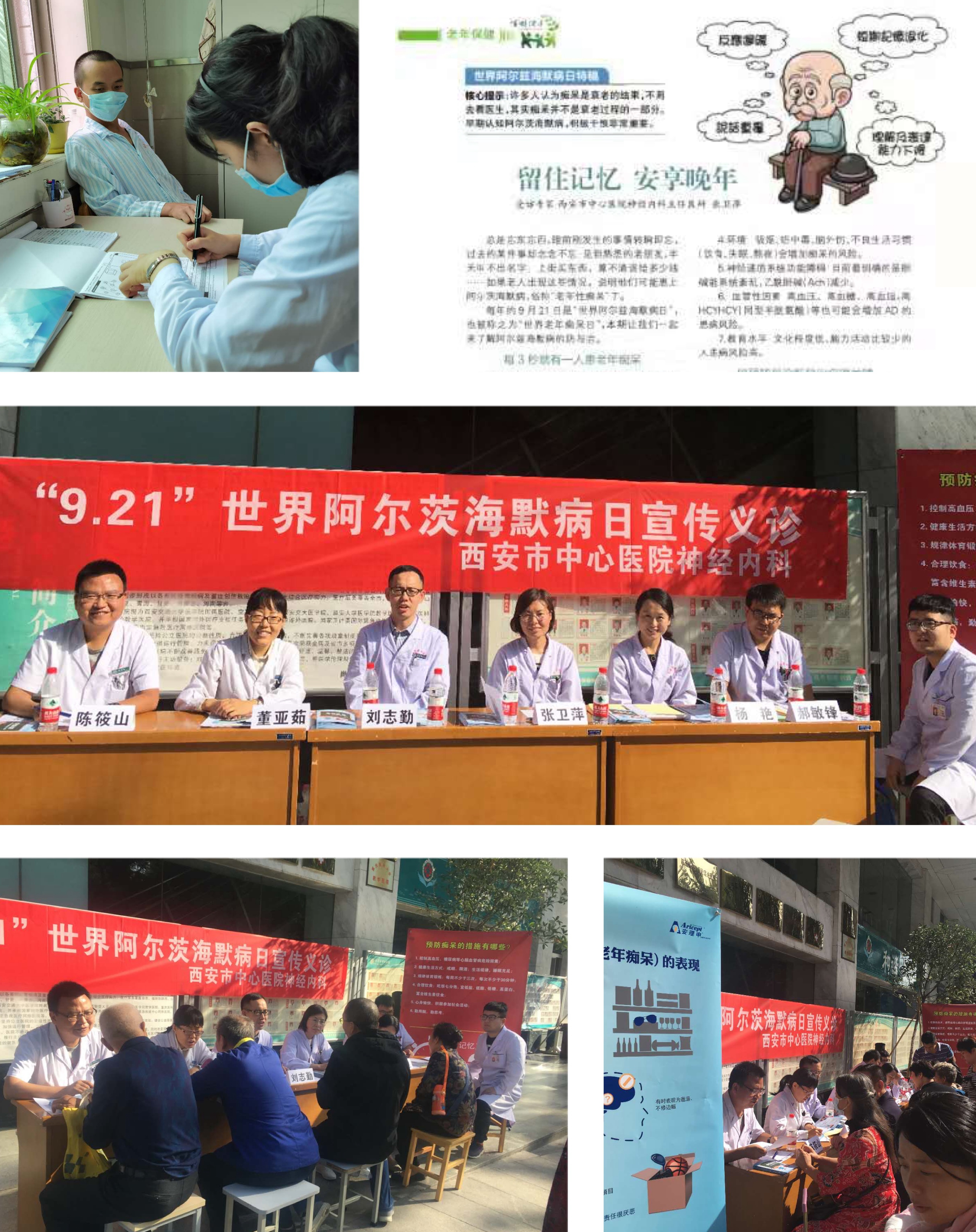 我院神经内科记忆门诊开设于2018年,近年来每逢“国际痴呆日”均会举行专访、义诊、科普讲座等相关活动。认知障碍组成员包括张卫萍主任医师带领的4名医生与3名康复治疗师,有规范的量表筛查室,建立了记忆障碍患者完整的临床数据库,针对记忆障碍患者进行全面规范诊疗和随访,做到早发现、早诊断、早干预。