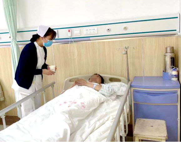 大年初一下午15:00,普一科护士站电话响起,“我是医院总值班,急诊科有一名腹部外伤的患者需要住院,患者属于三无人员,给予开通生命绿色通道,请你们做好准备”,“好的,我们积极准备”,值班护士接到电话后立即向值班医师申亚伟、高超医师报告情况,并做好危重患者的救治准备。15:20,急诊科护士及保安护送患者入科,值班医生、护士将患者抬到病床上,患者蓬头垢面、衣衫褴褛、精神疲倦、呼吸急促、全身散发着酸臭味,而且精神异常,思维混乱。申亚伟副主任医师立即查看患者后指示,患者病情危重,积极完善术前检查,立即给予输液、输血,急诊手术治疗,大家争分夺秒。值班护士杨婷、刘梦立即给予心电监测、吸氧、静脉采血、建立两路静脉通道,快速补液、输血,同时为患者翻身,擦洗身上的污垢,患者极不配合,乱踢乱打,但大家没有退缩,15:50将患者送往手术室,经过几个小时的抢救,患者终于转危为安。在医务科、重症医学科的支持和帮助下患者术后恢复良好,已康复出院。