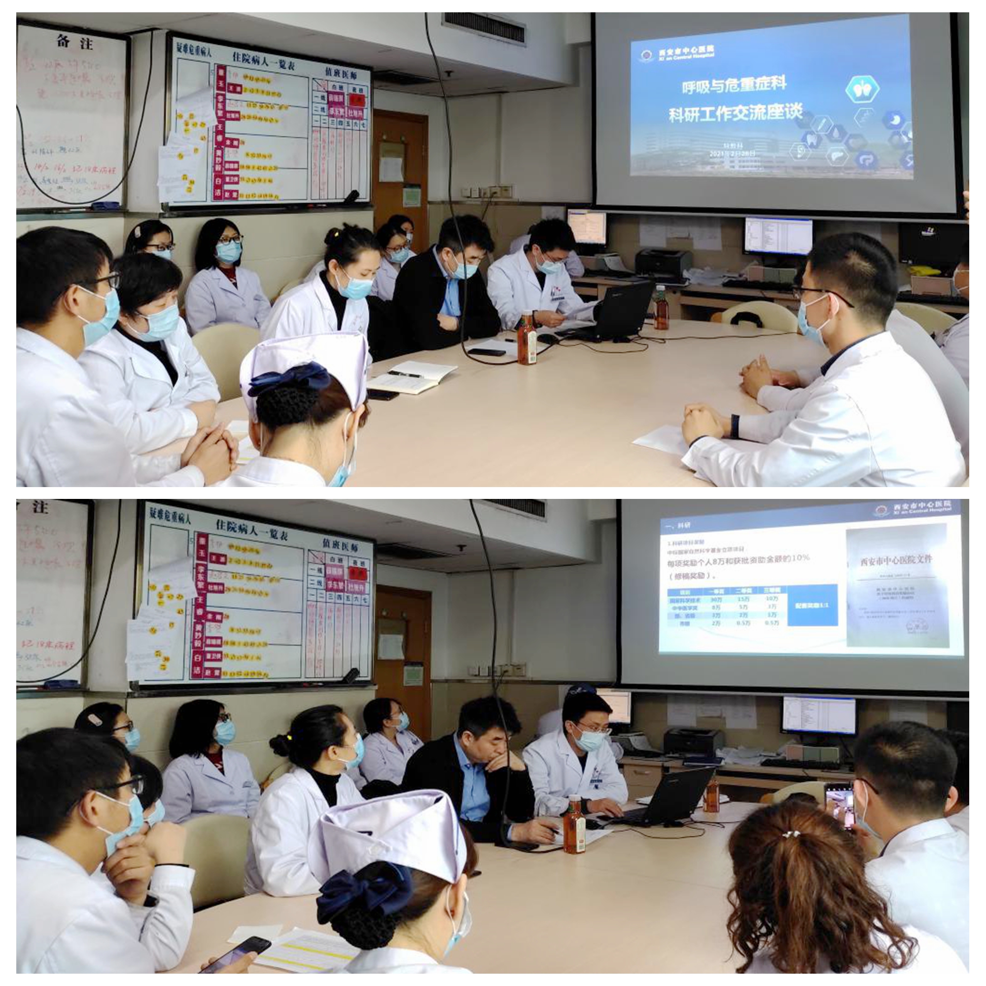 2021年2月26日上午11时,91论坛 郭华副院长带领科教科郑南波副科长一行三人到呼吸与危重症医学科与科室全体医护人员进行科研工作交流座谈,此次会议氛围严肃而活泼、生动而热烈。