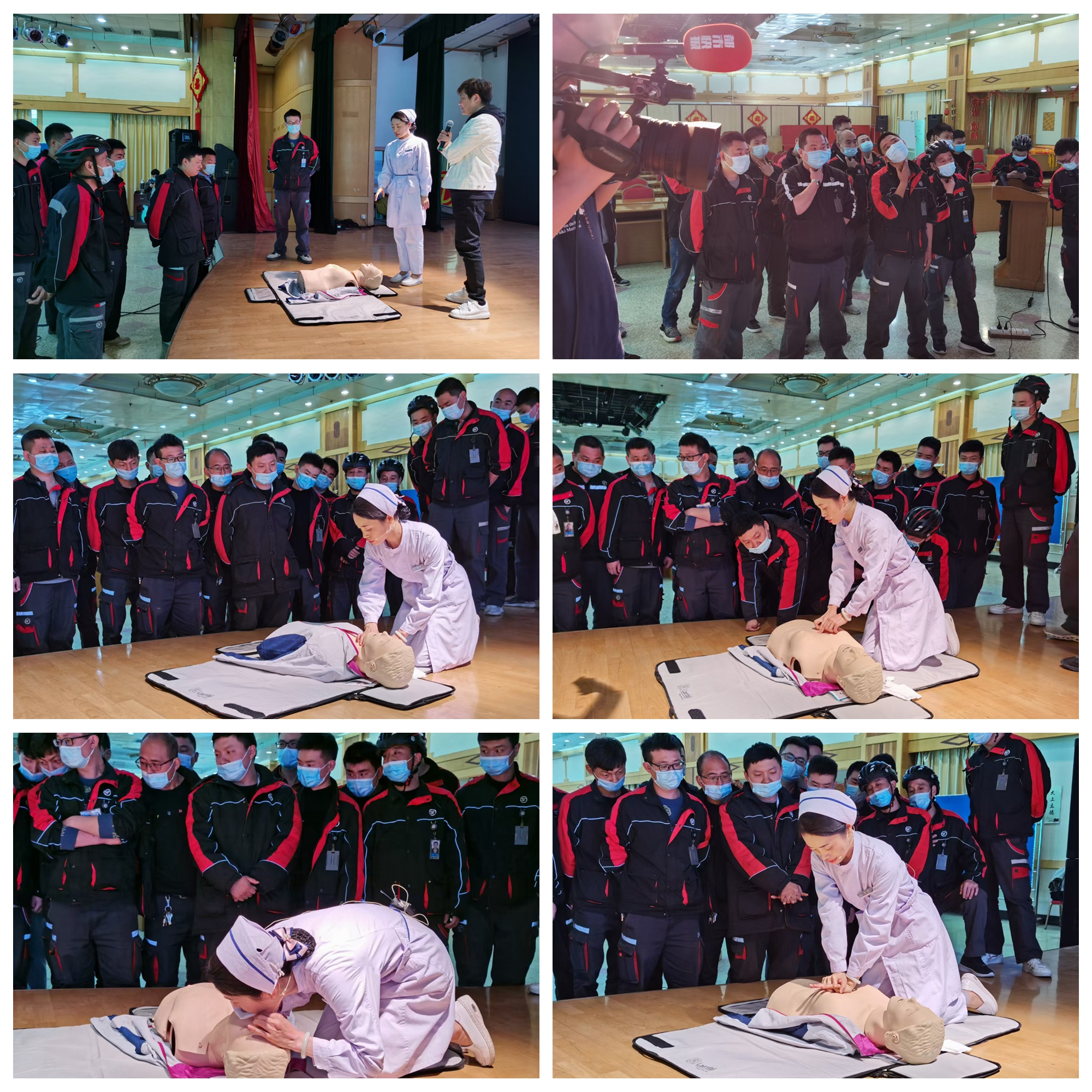 上午9点,在科教科协助下,由我院宣传科与陕西省电视台二套组织,30名顺丰快递小哥整齐划一的来到我院四楼多功能厅接受心肺复苏技能培训。