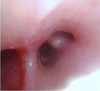 (图为镜下灌洗前)