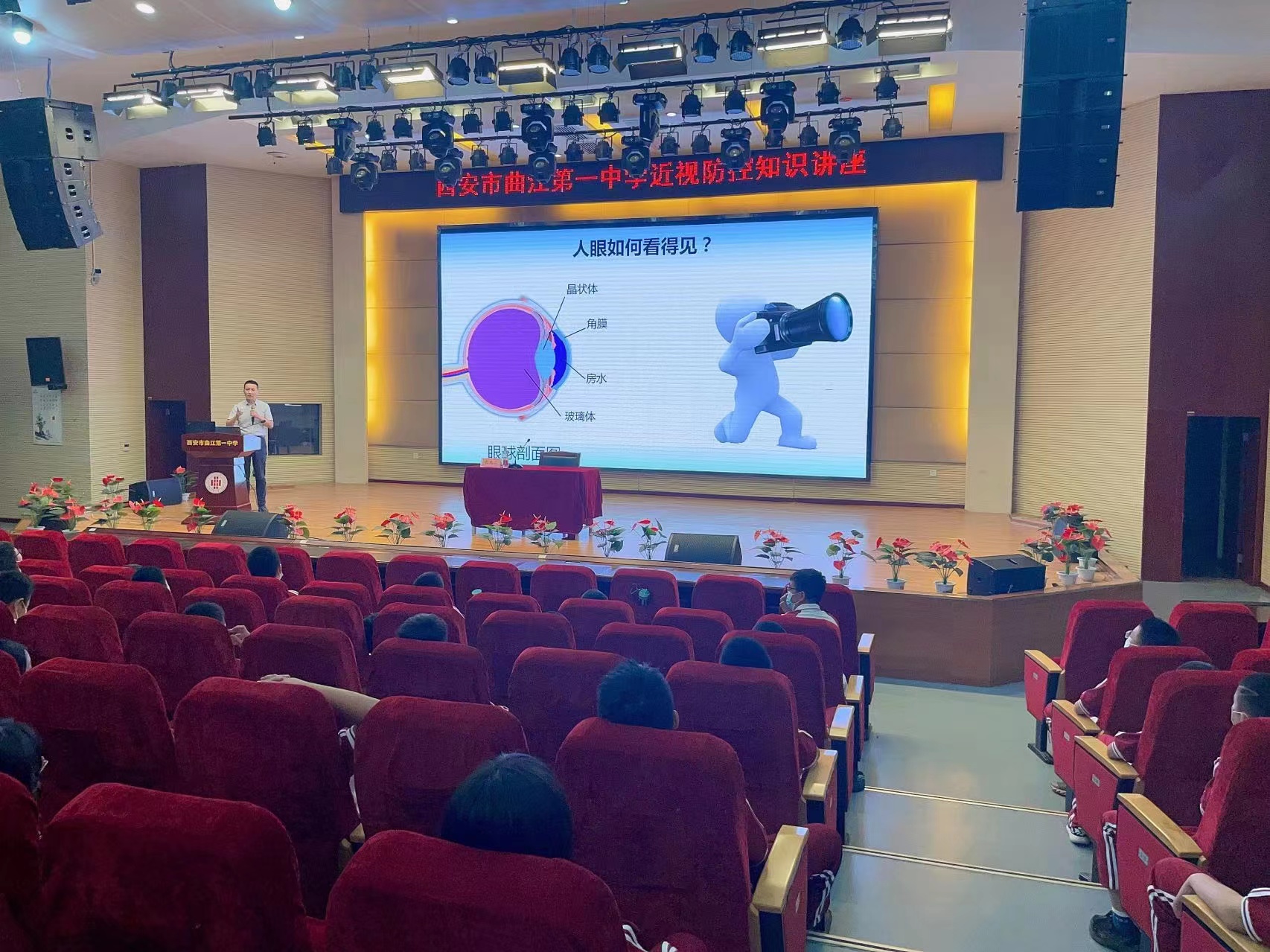 9月14日91论坛 眼科杜兆江主任作为曲江一中健康副校长受邀来到了曲江第一中学做了“家长和学校如何保护好孩子的眼睛”专题讲座。杜兆江博士与本校的老师和学生一起探讨眼健康、保护眼睛、近视防控的科学问题。