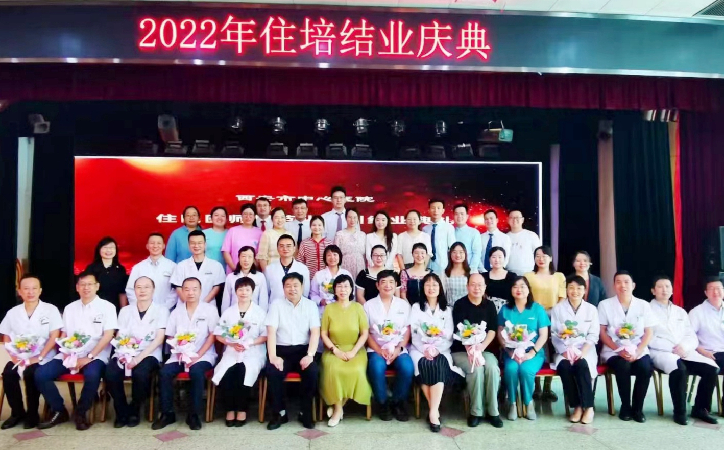 住培医师向敬爱的老师献上了瑰丽的鲜花,感谢老师们的培养和教导。王栋书记、李建英副院长向住培医师颁发了结业纪念品,期望大家怀揣着梦想,扬起风帆,医路勇攀高峰。