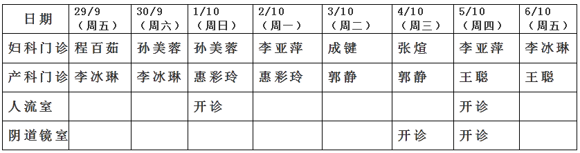 中秋国庆节排班表