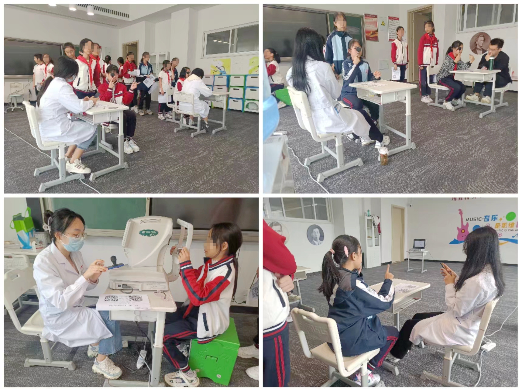 市中心医院眼科团队积极响应党的二十大号召,用实际行动为推进健康中国建设作贡献,深入贯彻习近平总书记关于儿童青少年近视防控系列重要指示批示精神,进一步落实《综合防控儿童青少年近视实施方案》、《儿童青少年近视防控光明行动工作方案(2021—2025年)》等相关要求,紧紧围绕“十四五”全国眼健康规划,积极推行“医教家”结合校园视力监测新模式,为中小学生建立视觉健康电子档案。