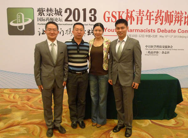 2013年5月11日,GSK杯全国青年药师辩论赛总决赛在北京举行。通过近3个月的省内比赛和赛区比赛,由我院闫抗抗药师和来自华西地区的其他3名药师组成华西代表队,最终以优异的表现战胜华南队并以全场最高分获得全国冠军。
