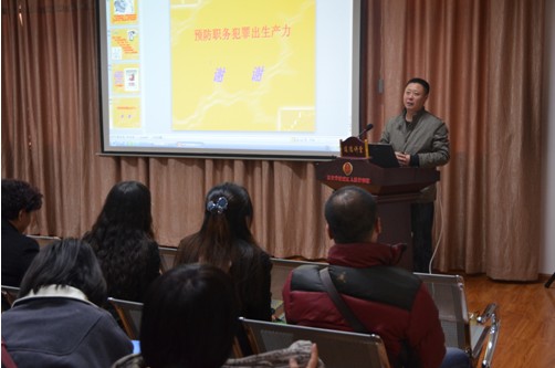 随后全体人员聆听了新城区人民检察院预防职务犯罪科郭壮科长的警示教育课,通过对近年来中央惩治和预防腐败的新举措;当前卫生系统的反腐形势;职务犯罪的原因、表现形式、严重危害以及预防措施;卫生系统的贪污、贿赂、渎职、挪用公款的典型案例四部分讲座内容的了解、领会和掌握,普遍达到了廉政思想入脑入心,继续筑牢思想防线的学习效果。
