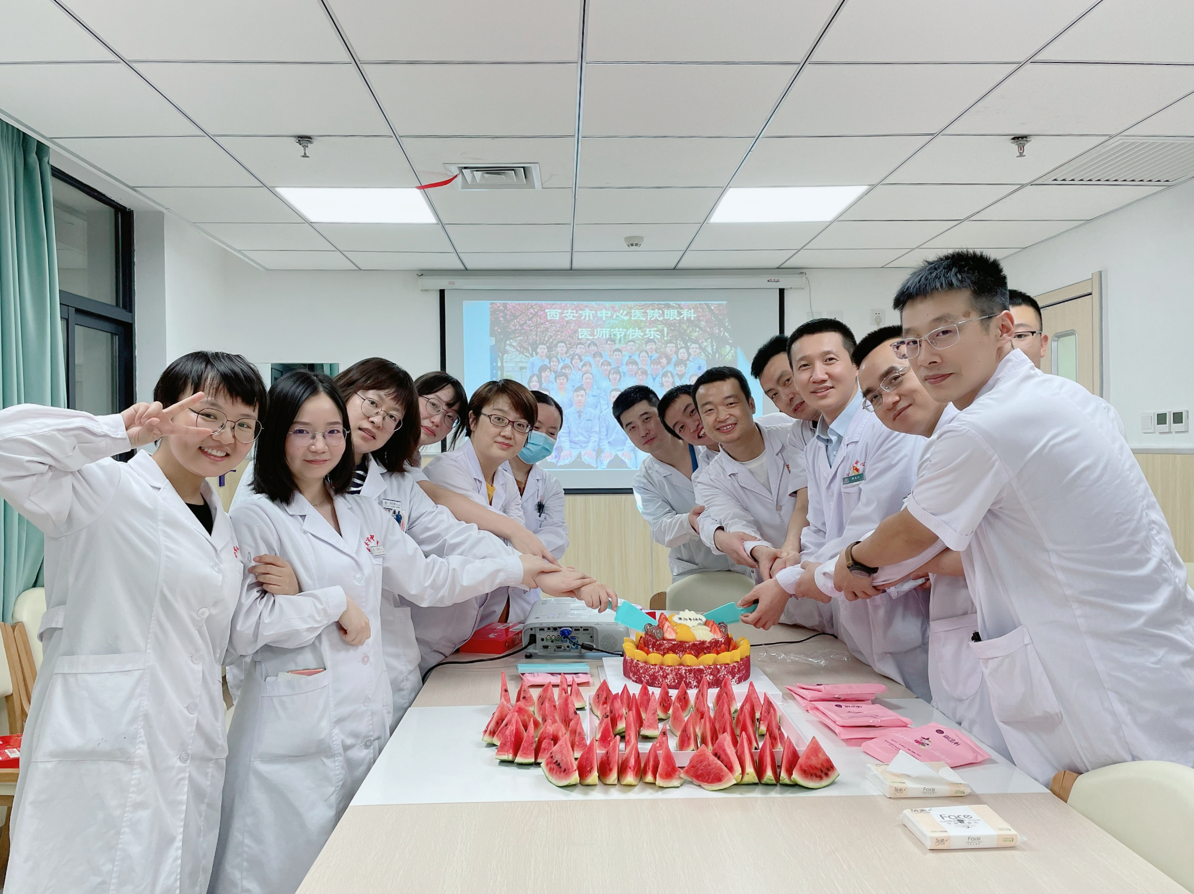 为了让我们快速适应,杜兆江主任详细介绍了基地的培养模式,并安排科室高年资老师一对一带教。每天的查房,带教老师会根据病人的情况提问相关知识,补充有缺漏的知识点,开医嘱、跟手术、写病历都全程参与进来,及时发现并改正错误;每周三的中午,各位老师会让大家准备一次五分钟左右的讲课展示,自选方向做小专题汇报,老师进行全方位指导改进,经过反复培训,我们受益匪浅,讲课技巧、思维逻辑、临场发挥、课件制作、内容创新、语言表达等各方面能力都得到了提升;每两周一次的教学查房、病例讨论以及小讲课等教学活动,更是在丰富了专业知识面的同时,围绕具体的临床病例,对我们的临床思维方式、动手操作能力、语言表达能力进行系统培训;更别提还有随时随地针对特殊病例的交流讨论、发现欠缺当时就改正的技能操作指导……
