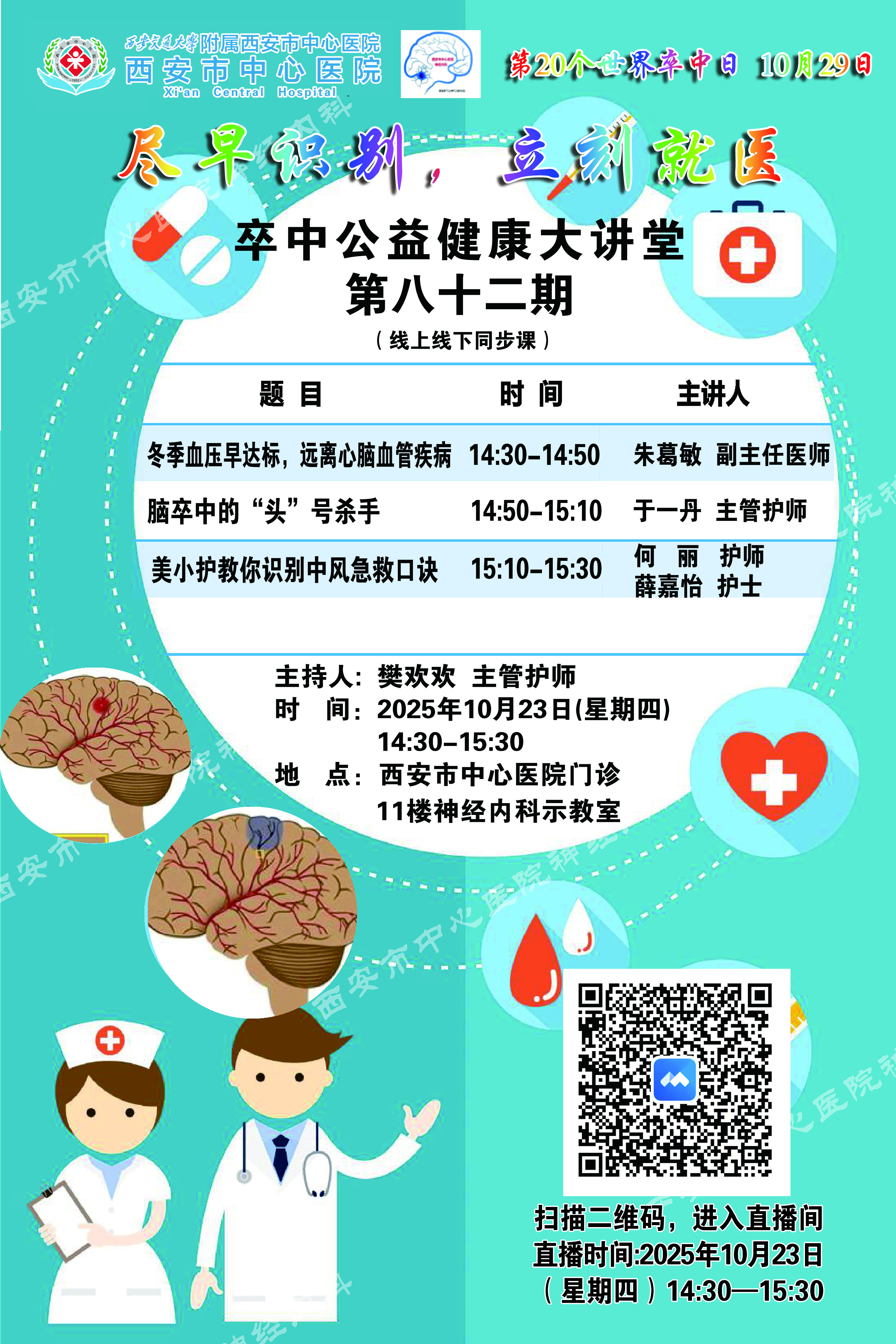 作为国家高级卒中中心,91论坛 神经内科将于10月23日至29日隆重推出“世界卒中日”系列健康科普活动,邀您共同守护大脑健康。