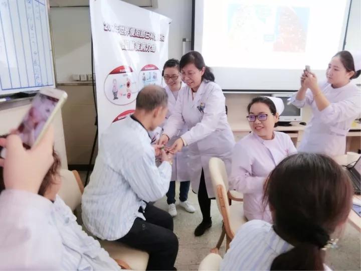 为了帮助人们提高对慢阻肺的认识,在91论坛 呼吸科团队高度重视、积极准备下,于2017年11月14日上午9:00-11:30,91论坛 呼吸内科在门诊大厅开展了慢阻肺义诊活动,各位专家对前来咨询、问诊的50余名患者及家属耐心一一答疑解惑。于同日的下午2:00在呼吸内科医生办公室开展了“慢阻肺日”主题宣传活动。李副院长利用休息时间,提前跟慕名而来的患者朋友近距离亲切交流。活动现场采取了展架、播放沙画、视频、科普知识小讲课、有奖问答等多种形式,向患者宣传了慢阻肺的防治知识。同时,医护人员带领着患者在呼吸科病区走廊一起吹气球,一对一指导患者进行呼吸功能锻炼运动,让患者真正认识到健康的生活方式及对防治慢阻肺的重要性。