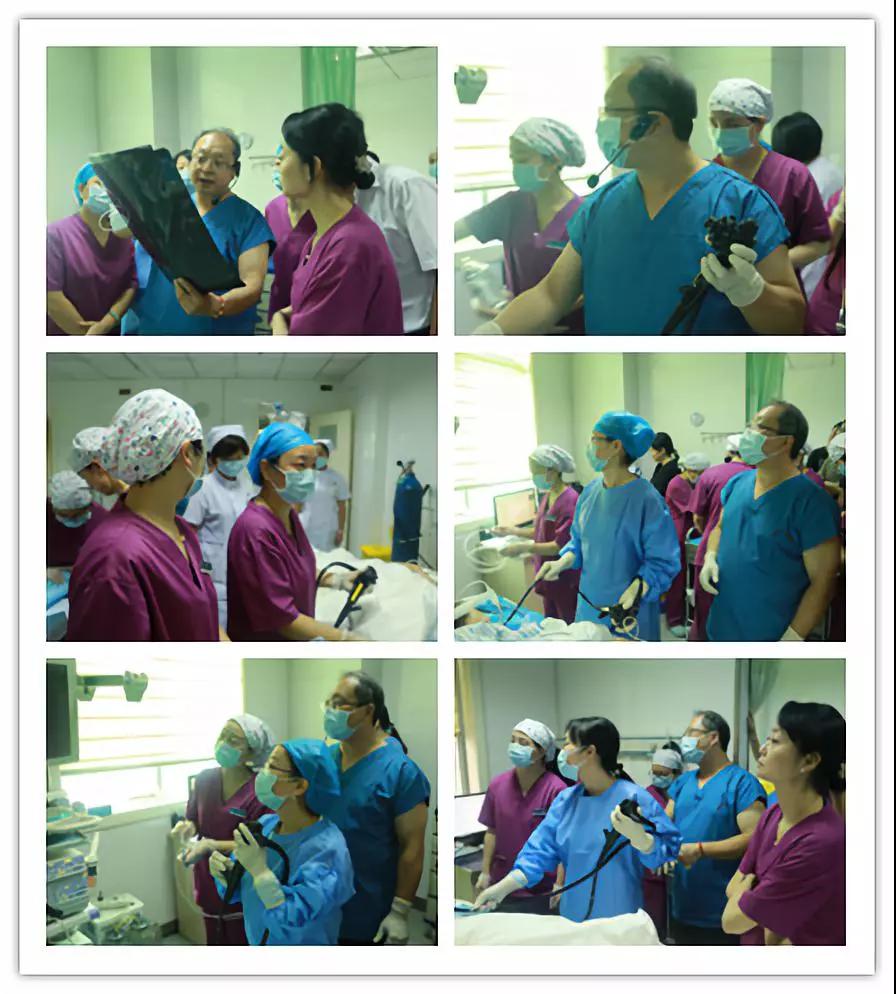 下午,培训班安排了食管胃脉曲张内镜下治疗的手术演示及手把手培训。在我院麻醉科的全力配合下,李坪教授首先进行了2例高难度食管胃底静脉曲张精准治疗的手术演示,随后又指导学员对5例食管胃底静脉曲张患者在全麻下进行了内镜下治疗,李坪教授手把手教学讲解了ESVD的操作要点,手术的细节问题,首次分享了"地毯式搜索曲张静脉"等最新的手术技巧,用最接地气,最实际的的方法让学员们收益匪浅,7例手术患者均取得了良好的疗效,在一片掌声中结束了本次培训班。