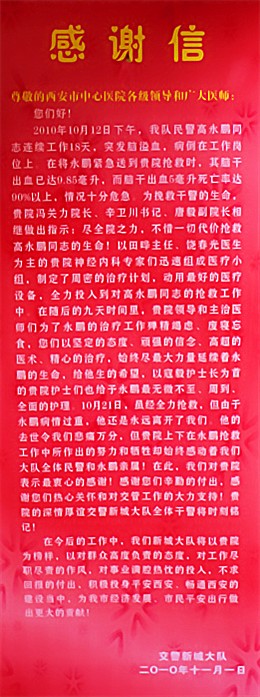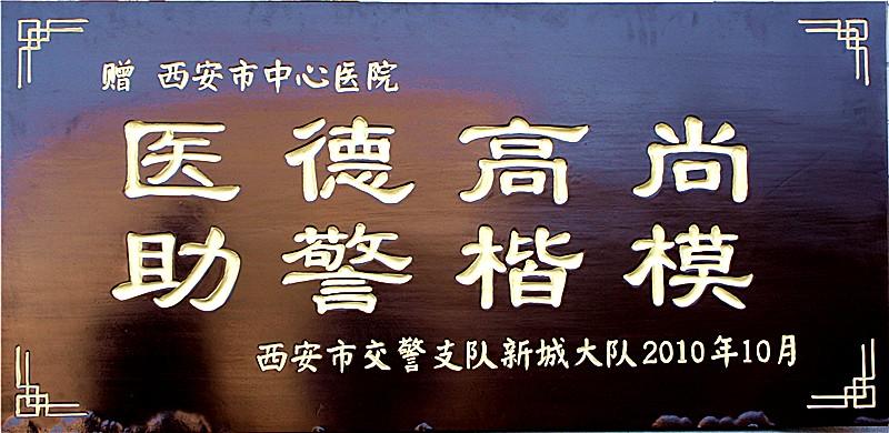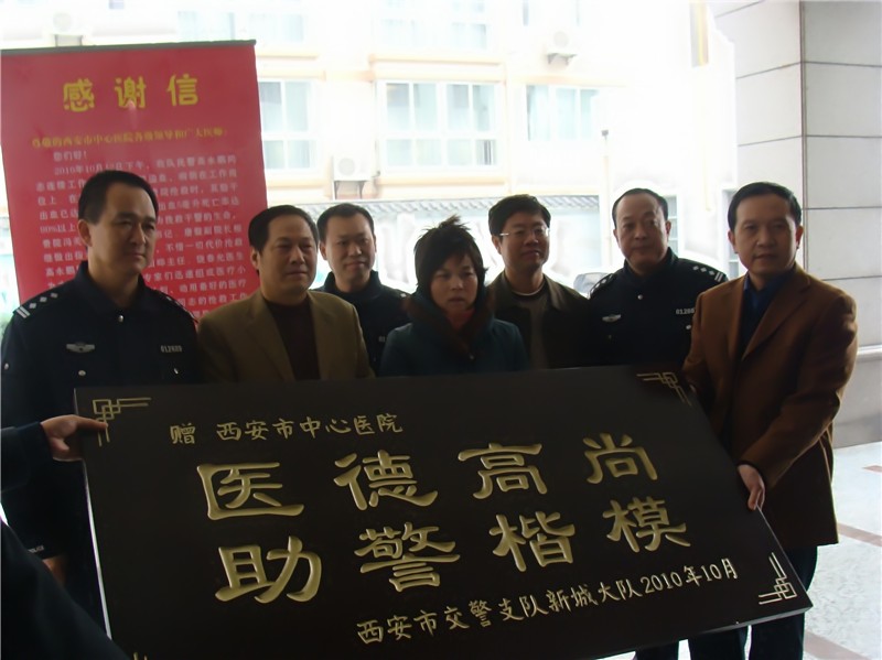 交警新城大队给我院送牌匾及感谢信