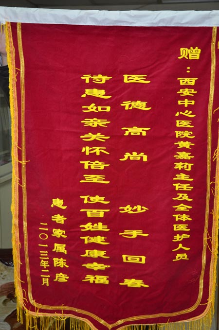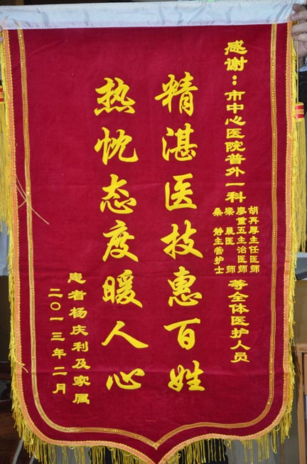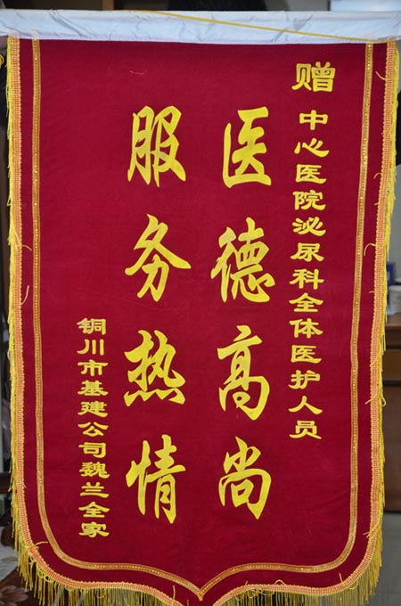 送泌尿科、儿科黄嘉莉、普1科胡再厚廖重五梁晨桑静的锦旗