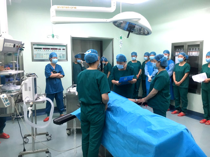 本次演练分两组进行,分别围绕一个典型手术案例,将手术室安全核查制度、用血安全制度、手术标本管理制度、围手术期护理评估制度、手术物品清点等重点制度与手术患者出现呼吸心跳骤停、术中发生锐器伤、术中突然停电、术中停中心吸引及氧气等应急预案相结合,穿插交替,用场景再现的形式进行模拟演练。