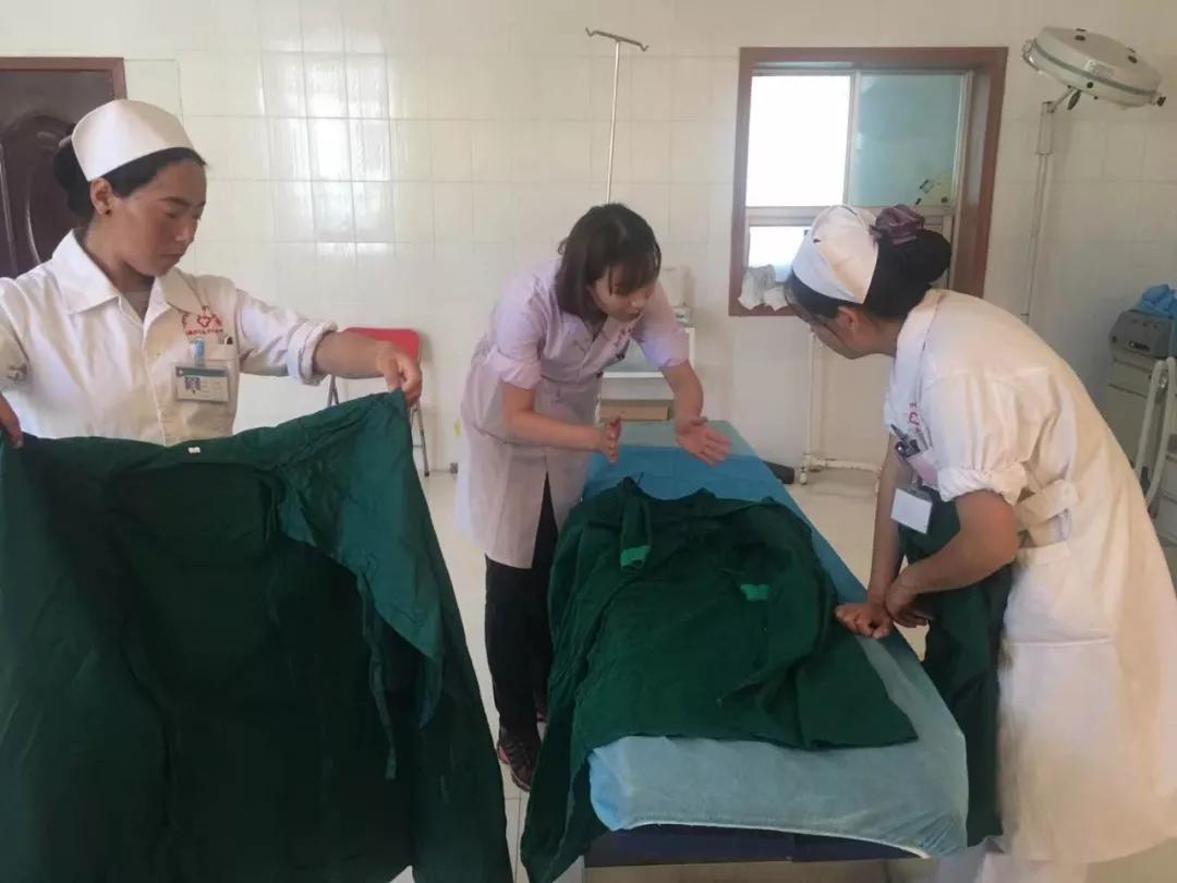 但是,经过了解,札达县医院每年的手术量极少,医务人员平日的专科学习机会有限,尤其是护理人员中,全院没有一名手术室专科护士,人员的实践能力几乎为零。培训迫在眉睫,时间紧、任务重,刘静立即根据该院情况,制定了完善的<<札达县医院手术室专科护士培训计划>>,护理部从全院护士中,挑选出两名藏族护士作为专科护士进行培训。虽是短期,虽只有两名学员,但面对没有任何手术室工作概念的藏族护士来说,培训任务同样艰巨,内容一个也不能少,按照2018版<<手术室护理实践指南>>的标准,刘静带着两名护士早上手把手的教,下午实打实的练,跟着认认真真的考,几周下来,我们的藏族小护士干起手术室工作来,已经有模有样了。但是,他们从来没有配合过一例手术,理论和实践难以结合,在全年的手术量都在个位数的现实情况下,刘静想到了解决办法,“手术情景模拟演练”,但是,现实情况又给刘静出了难题,县医院本院的麻醉及外科医生的知识经验也不丰富,要想“演练”,就得全体人员从头开始学!指定了详细的“演练方案”后,刘静带领参加“演练”的所有队员,展开了“传、帮、带”式的培训。她只有一个信念,不管基础多差,一定要按照国家标准教会这里的医务人员手术的配合流程和常规。功夫不负有心人,刘静带领学员们从最基础的开始,一遍一遍讲,一遍一遍练,终于,将一场精彩的“手术情景模拟演练”呈现出来。