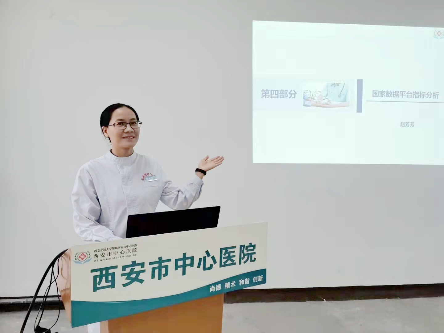 大外科护士长王敏首先对2021年主要完成的护理质控工作进行了总结汇报,接着,针对2021年各项护理指标数据结合实际情况进行分析,承上启下的提出了2022年护理质控工作重点。