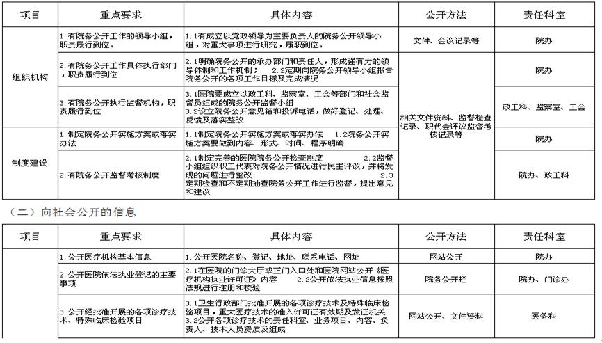 院务公开责任分解表》主动公开本部门应当公开的医院信息,积极协助医院院务公开工作办公室开展相应工作。