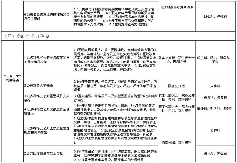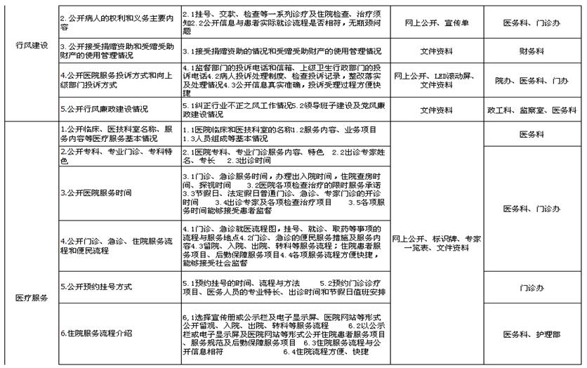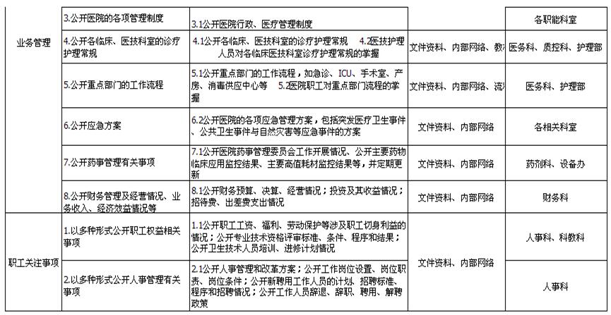 医院按公开项目的性质、范围、特点,制定院务公开目录,采取以下公开的形式: