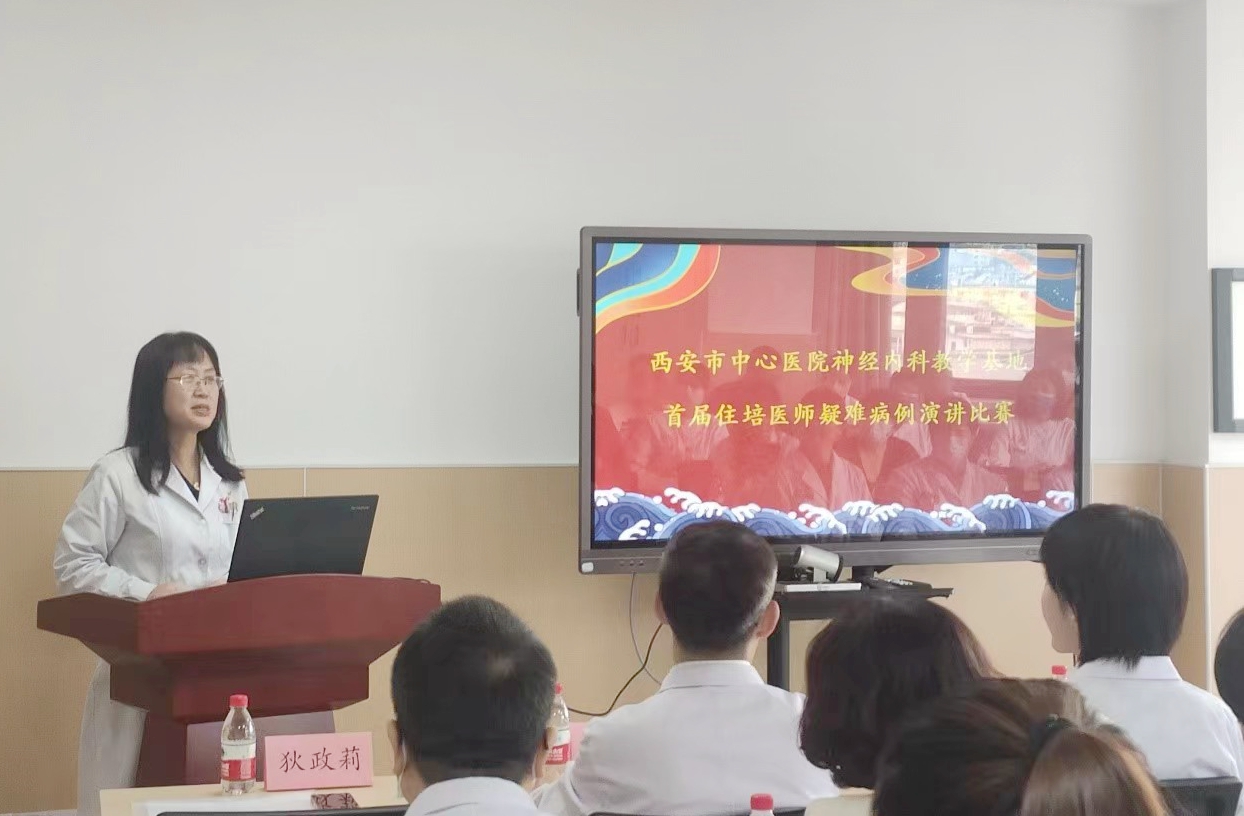 91论坛 神经内科狄政莉主任首先对莅临比赛现场的李建英院长、医联体医院冯昕主任、马迎主任表示热烈的欢迎。作为陕西省临床重点专科和西安市医学重点学科,中心医院神经内科一直重视医、教、研的协同发展,尤其在教学上积极向大学直属附属医院看齐。经过这些年的发展,培养了数十名专硕研究生和住培医师,这些学员毕业后通过自己所学,在各大医院施展自己,造福一方人民。病例比赛能够锻炼年轻医师的临床思维,演讲可以提升人的舞台展示能力,对在读的学员的临床能力提升及未来求职面试都有着积极意义。